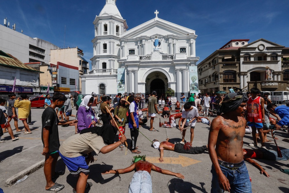 Na Filipinih so se na današnji dan spomnili trpljenja in smrti Jezusa Kristusa, pri čemer so na lesene križe pribili več kot deset spokornikov, drugi pa so se sami do krvi bičali po hrbtu. V otoški državi, kjer je več kot 80 odstotkov prebivalstva katoliške vere, s tovrstnimi obredi tradicionalno obeležijo veliki petek.